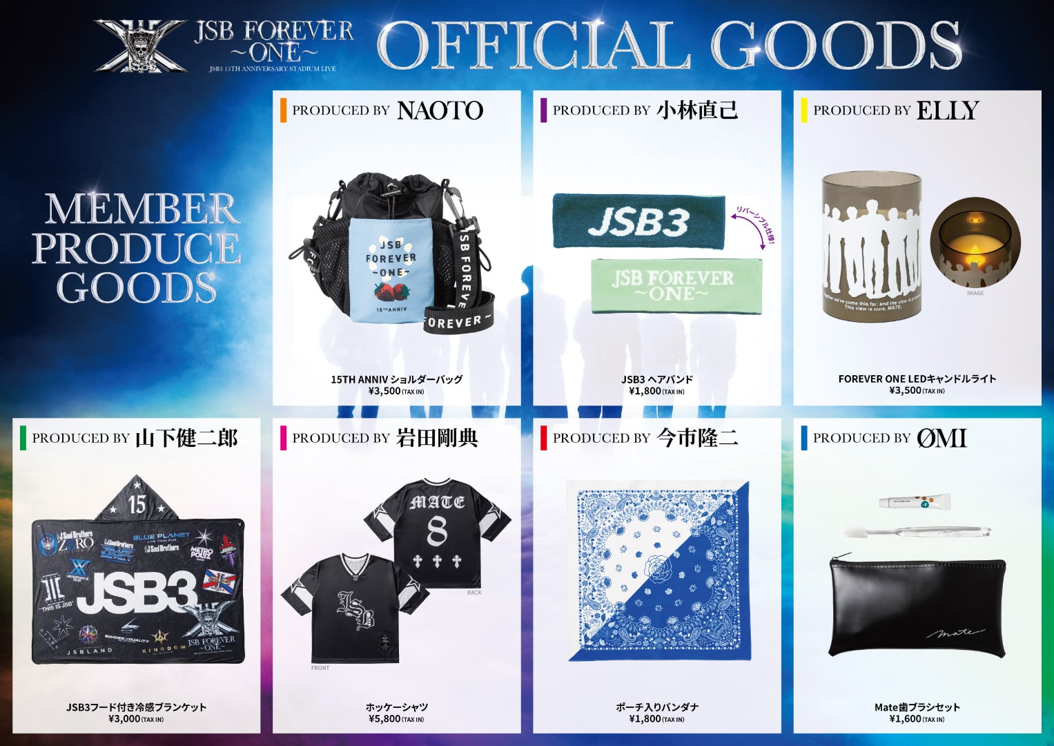 「三代⽬ J SOUL BROTHERS 15TH ANNIVERSARY STADIUM LIVE "JSB FOREVER ~ONE~"」オフィシャルグッズ発売!!