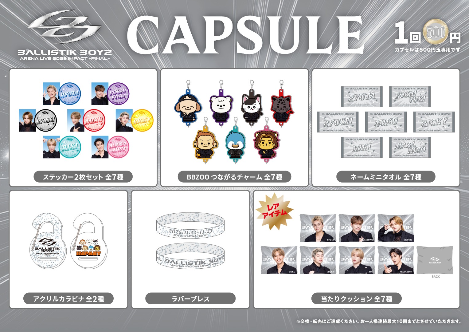 | 販売商品 | BALLISTIK BOYZ ARENA LIVE 2025 "IMPACT" ~FINAL~カプセル |