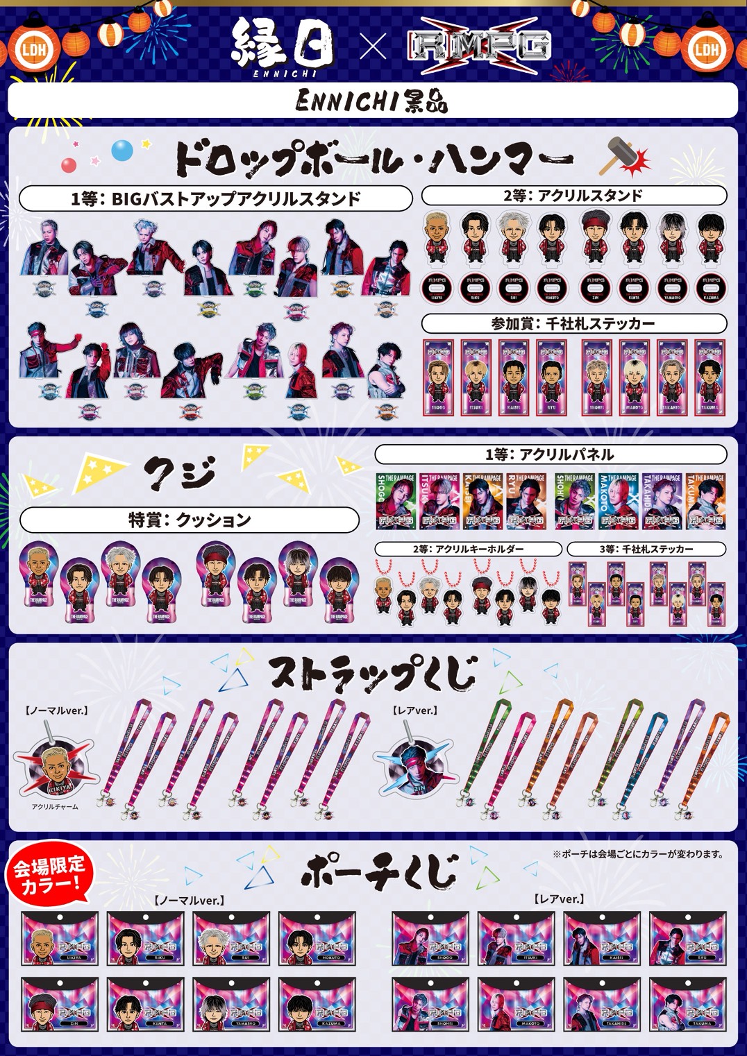 ・景品は特賞、2,3等、参加賞およびストラップくじ、ポーチくじはランダムとなりますので、同じものが数個出た場合も別種類との交換はお断りいたします。