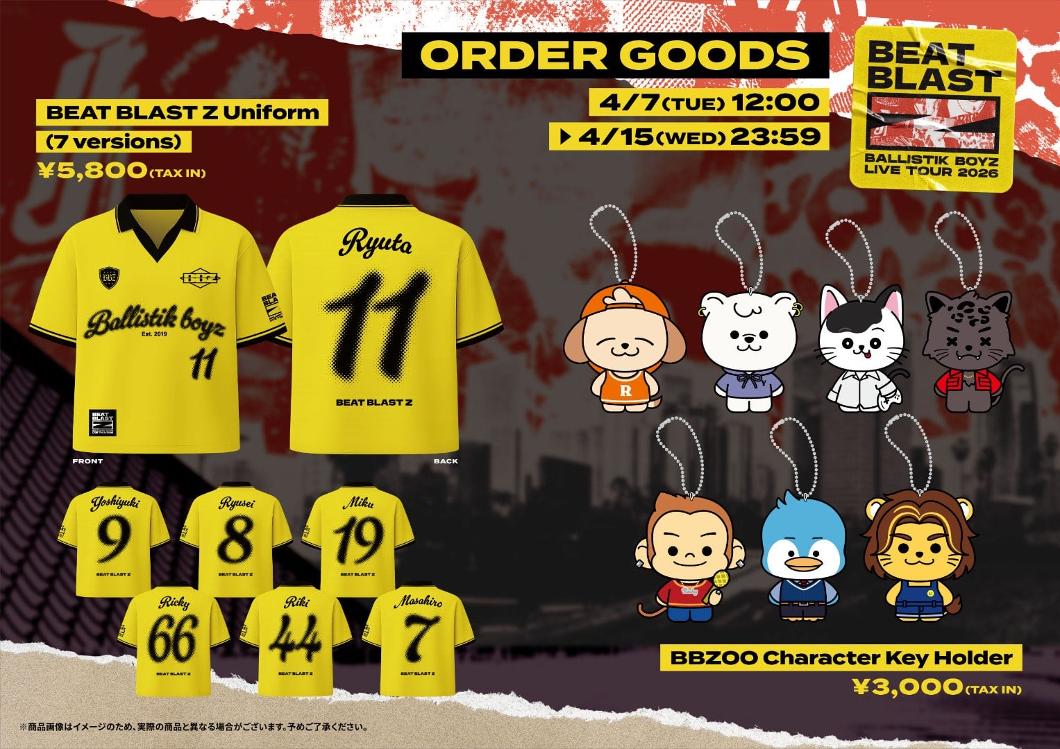 7/8(水)から開催される「BALLISTIK BOYZ LIVE TOUR 2026 "BEAT BLAST Z"」の公演に向けて、受注グッズの販売がスタートいたしました!!