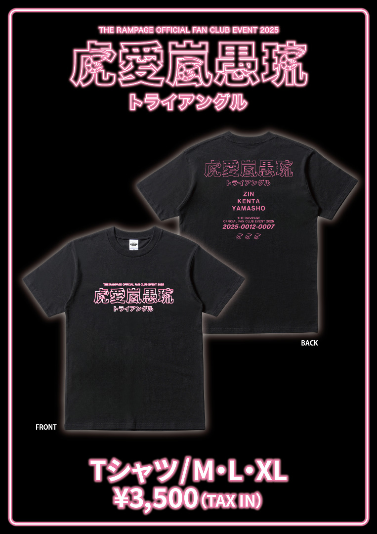 FRONTには"虎愛嵐愚琉"ロゴ、BACKにはTHE RAMPAGEのAB型トリオ 陣・神谷健太・山本彰吾のネームが入ったファンクラブイベントのために作られたTシャツが登場!!