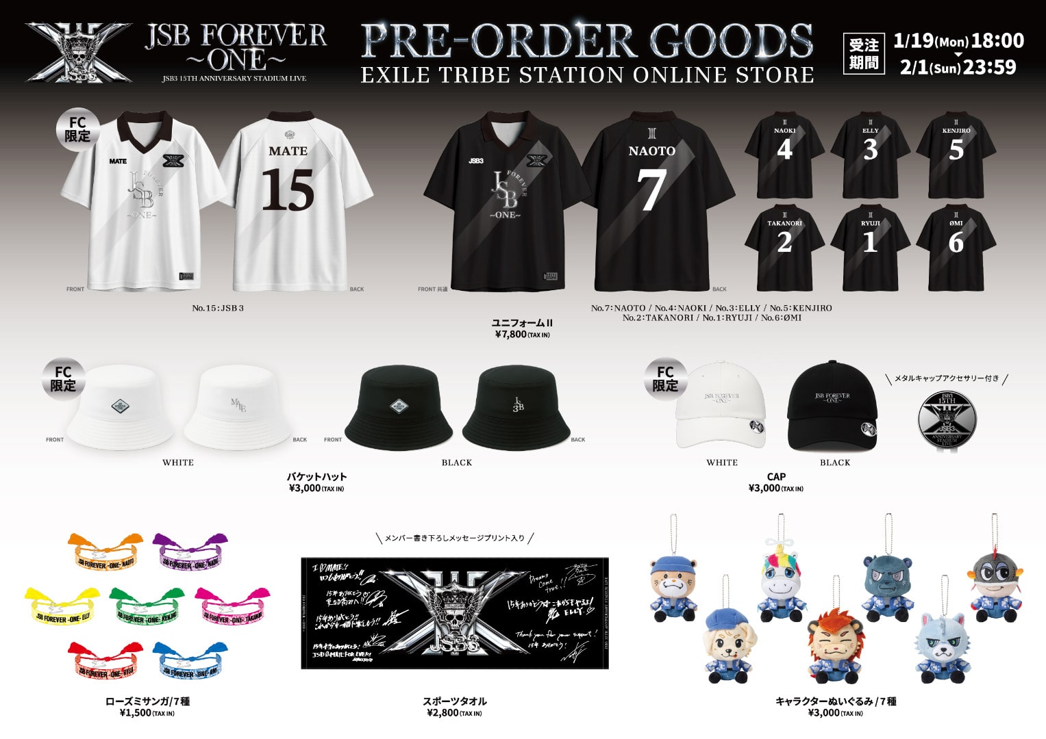 「三代目 J SOUL BROTHERS 15TH ANNIVERSARY STADIUM LIVE "JSB FOREVER ~ONE~"」4/11(土)、4/12(日)味の素スタジアム公演に向けて受注グッズの販売がスタートしました!!
